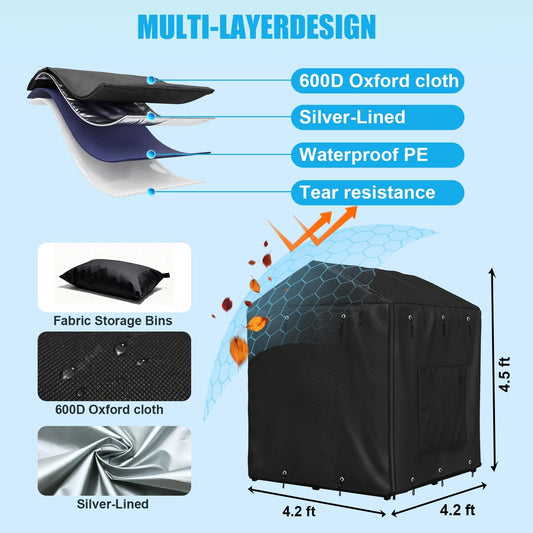 Premium Outdoor Dog Kennel Cover with 3-in-1 Window System - Waterproof 600D Polyester for 4.2' x 4.2' x 4.5' Crate - Protect Your Pet from the Elements!
